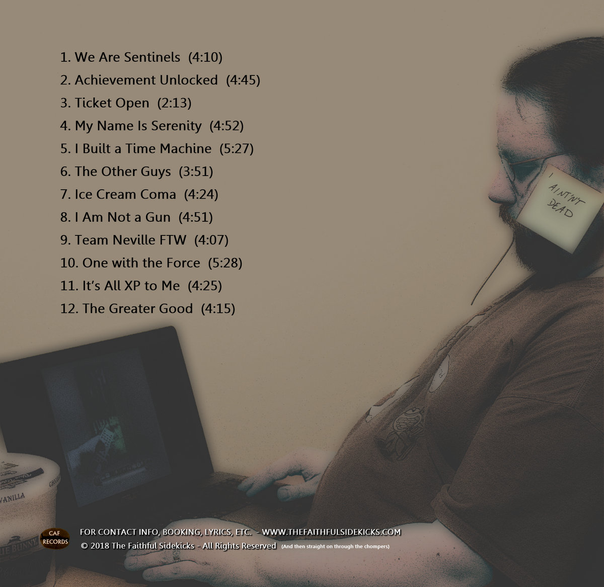 The full experience. CD in new flexible Digi-pack made from recycled material! Custom created art made by The Faithful Sidekicks. Also optionally includes an Achievement Unlocked sticker to show the world your adulting skills and a Han Solo For President sticker!